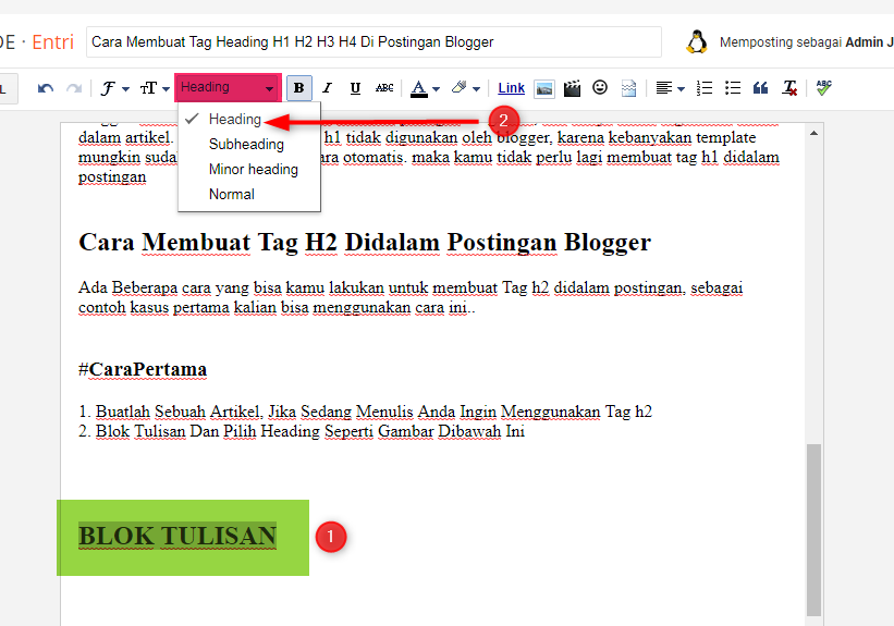 Cara Membuat Tag Heading H1 H2 H3 H4 Di Postingan Blogger - Jagoan Kode