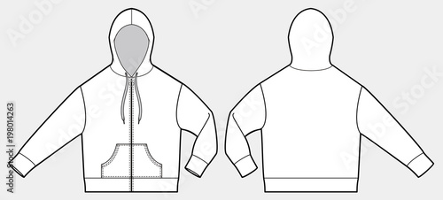Zipup Hoodie Jaket fashion flat technical drawing template - Buy this stock vector and explore similar vectors at Adobe Stock | Adobe Stock