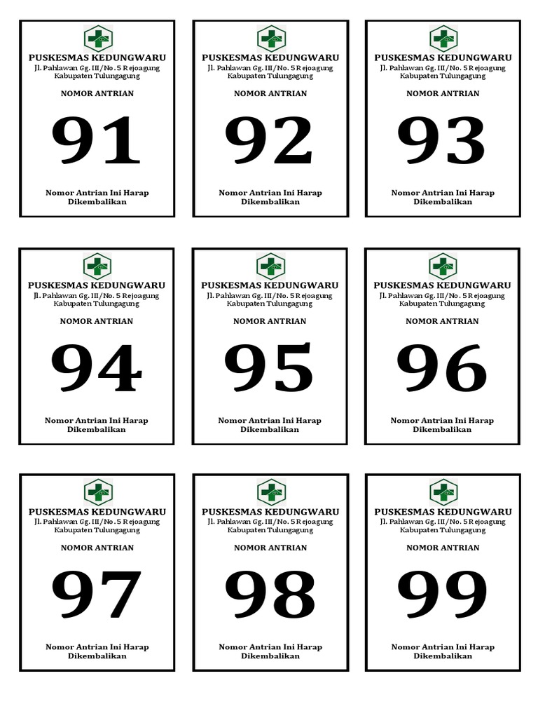 Jual Nomor Kartu Antrian - Kab. Karanganyar - akreditasipuskesmas | Tokopedia