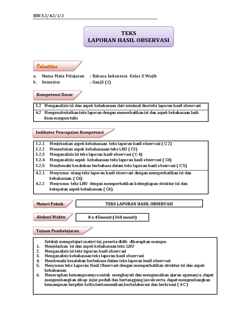 Pentingkah Laporan Hasil Observasi?: 1. Identitas