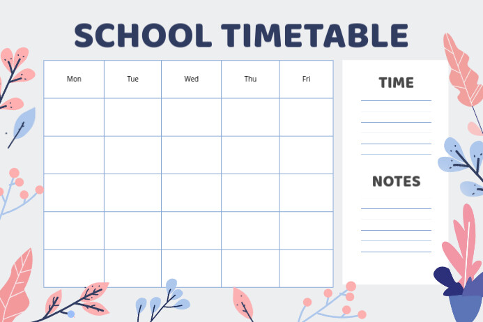 Pastel Floral Themed School Timetable Template | PosterMyWall