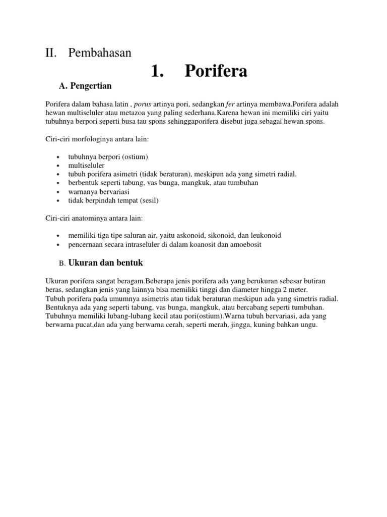 DOC) MAKALAH PORIFERA | Arif Julian - Academia.edu