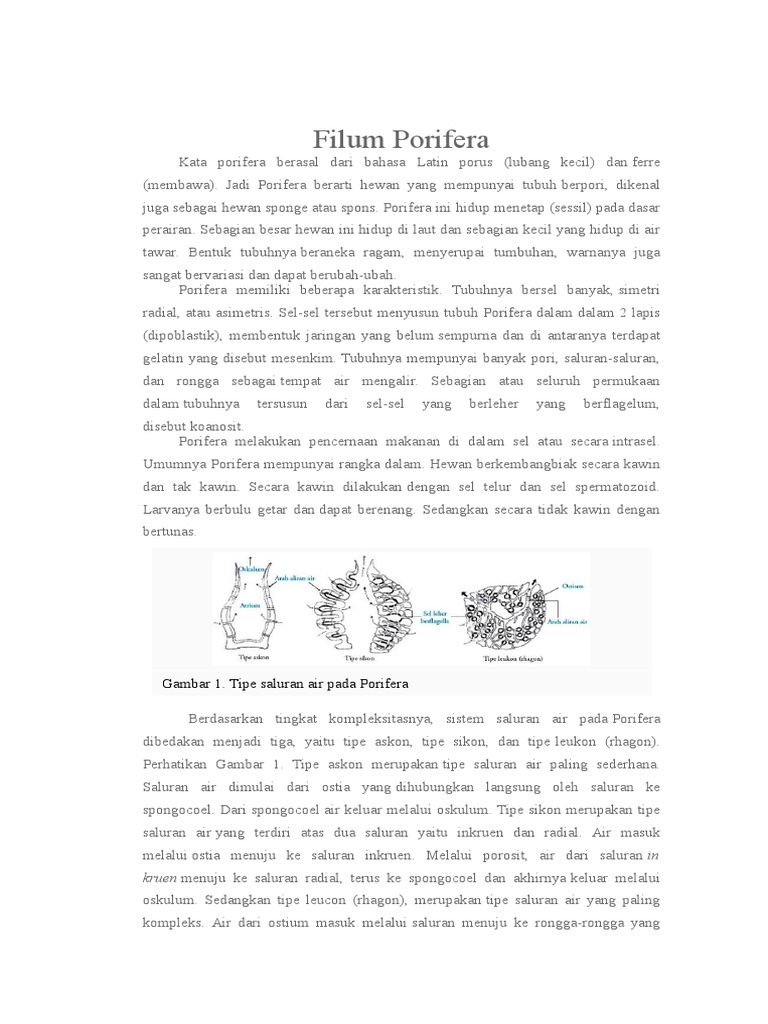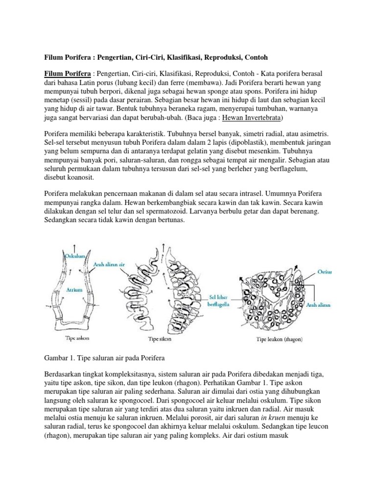 gambarkan dan jelaskan 3 tipe saluran air pada porifera - Brainly.co.id