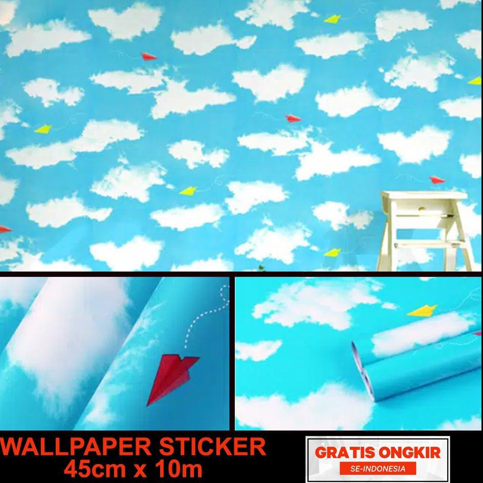 Wallpaper Dinding Stiker Awan Pesawat Kertas Biru 45 cm x 10 m | Shopee Indonesia