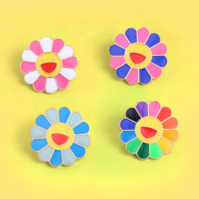 Warna warni Tersenyum Bunga Matahari Enamel Pin Rainbow Daisy Bunga Matahari Bunga Sakura Bros untuk Anak Wanita Tas Lucu Ikon Lencana Hadiah|Bros| - AliExpress